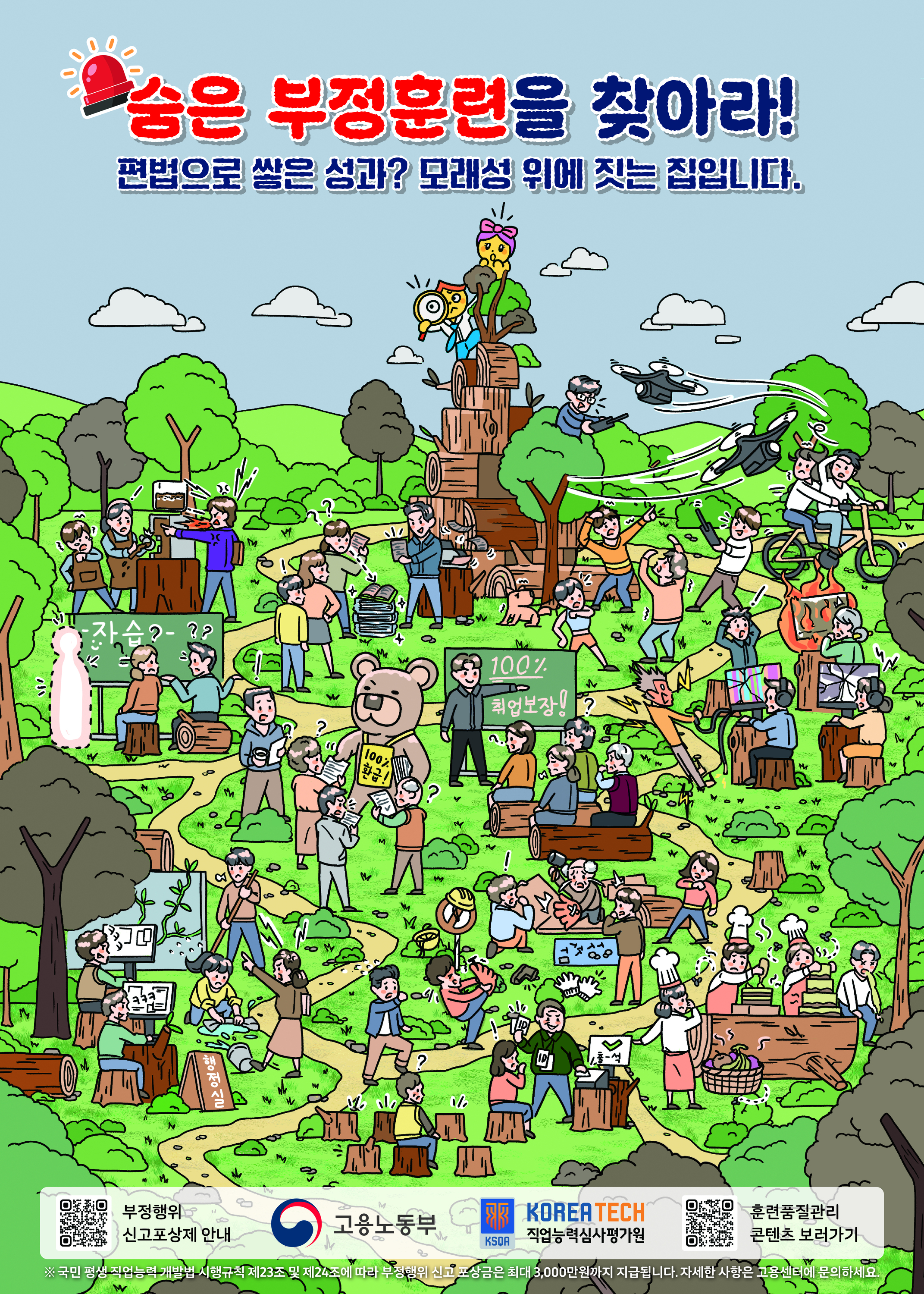 직업능력심사평가원에서 제공하는 부정훈련 예방 포스터 2종을 안내드립니다. 부정훈련 예방을 위한 주요 내용이 담겨 있으니 확인 부탁드립니다.