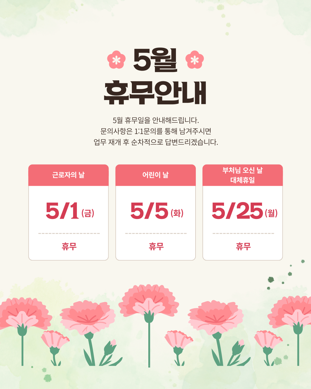 26년 5월 휴무 일정 안내드립니다.